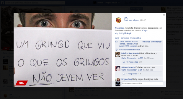 - Aí, como sabemos, ele se revolta com coisas que descobre em Fortaleza e, ao invés de fazer um material jornalístico bombástico sobre o que achou, decide largar a cobertura da Copa (seu sonho) e volta para casa. Sabe onde sua decisão é noticiada primeiro? Na Dinamarca, mais precisamente no dia 9 de abril: http://ekstrabladet.dk/sport/fodbold/landsholdsfodbold/vm2014/article2258090.ece