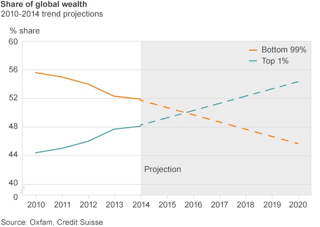 Mantidas as tendências atuais, a Oxfam diz que o 1% mais rico vai concentrar mais de 50% da riqueza do mundo em 2016.